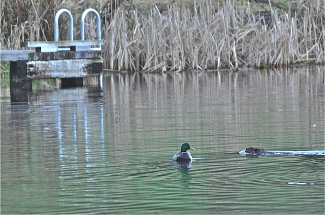 This spring marks the first time a beaver made his home around the pond… One early morning Justin Beaver took a last lap around the place before heading back to the lodge. A couple trees are down but not too many. I like the way the duck is staring right at the swimming beaver. He…