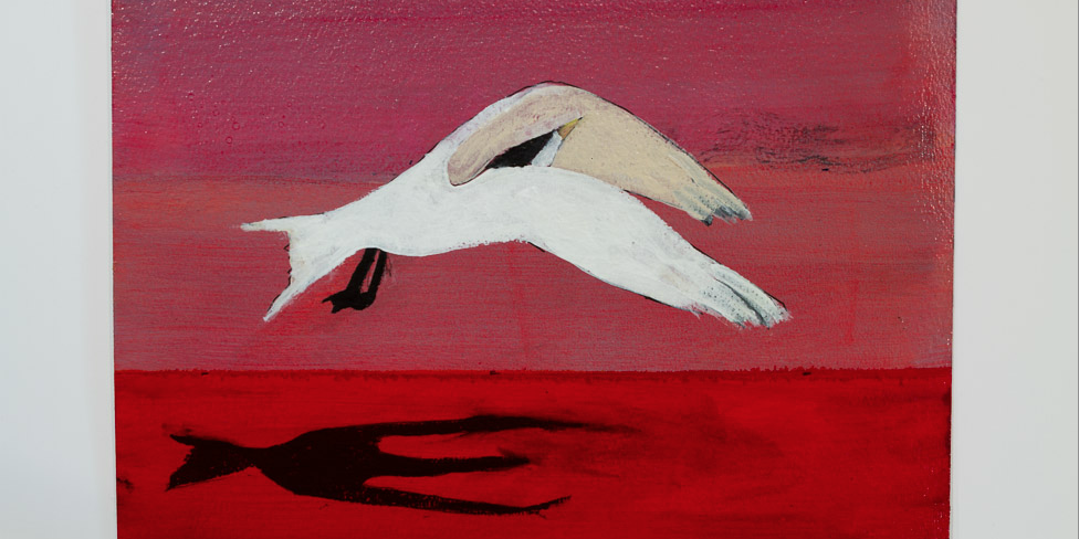 Another painting done in the last years of my father’s life. This one with the bird reflects the Thanksgiving holiday and the bird-like woman one of the characters bumps into at the local Costco. If you’d like to see more of my father’s paintings, simply click HERE!