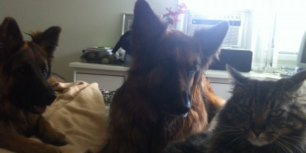 Your puppies and your kitty are so beautiful! And I love the way Zippy protects Eartha Kitt’n. I also agree that anyone reading this should go follow Tonya, Cathy, Rachel and Erica. 🙂