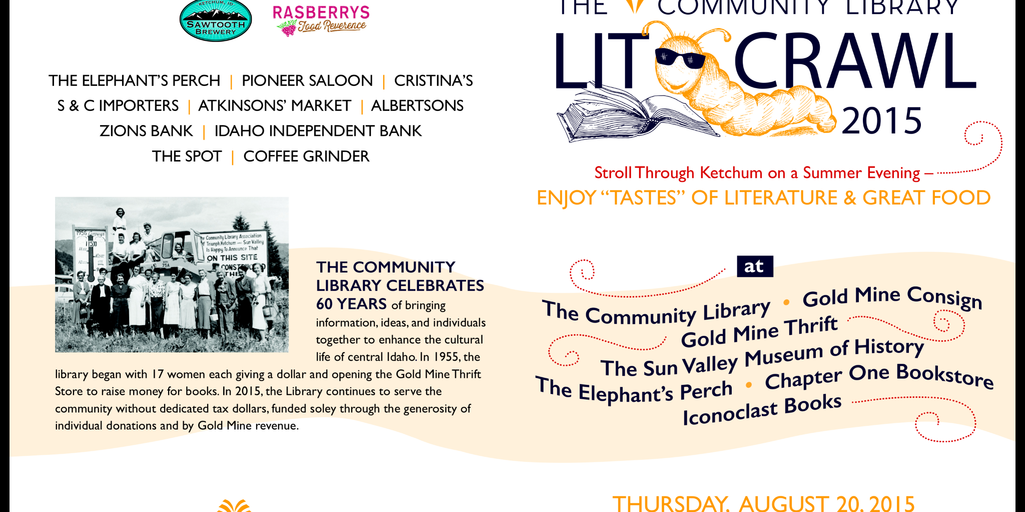 Anyway, if you’re around Ketchum or Sun Valley, Idaho this coming Thursday, August 20th from 5:30-7:30pm, please stop by one of the author venues and listen to some literary talk. Here are the promotional posters. There is also killer cuisine offered at each place you may want to “crawl” to during this Lit Crawl. Have the best time, and say hi!