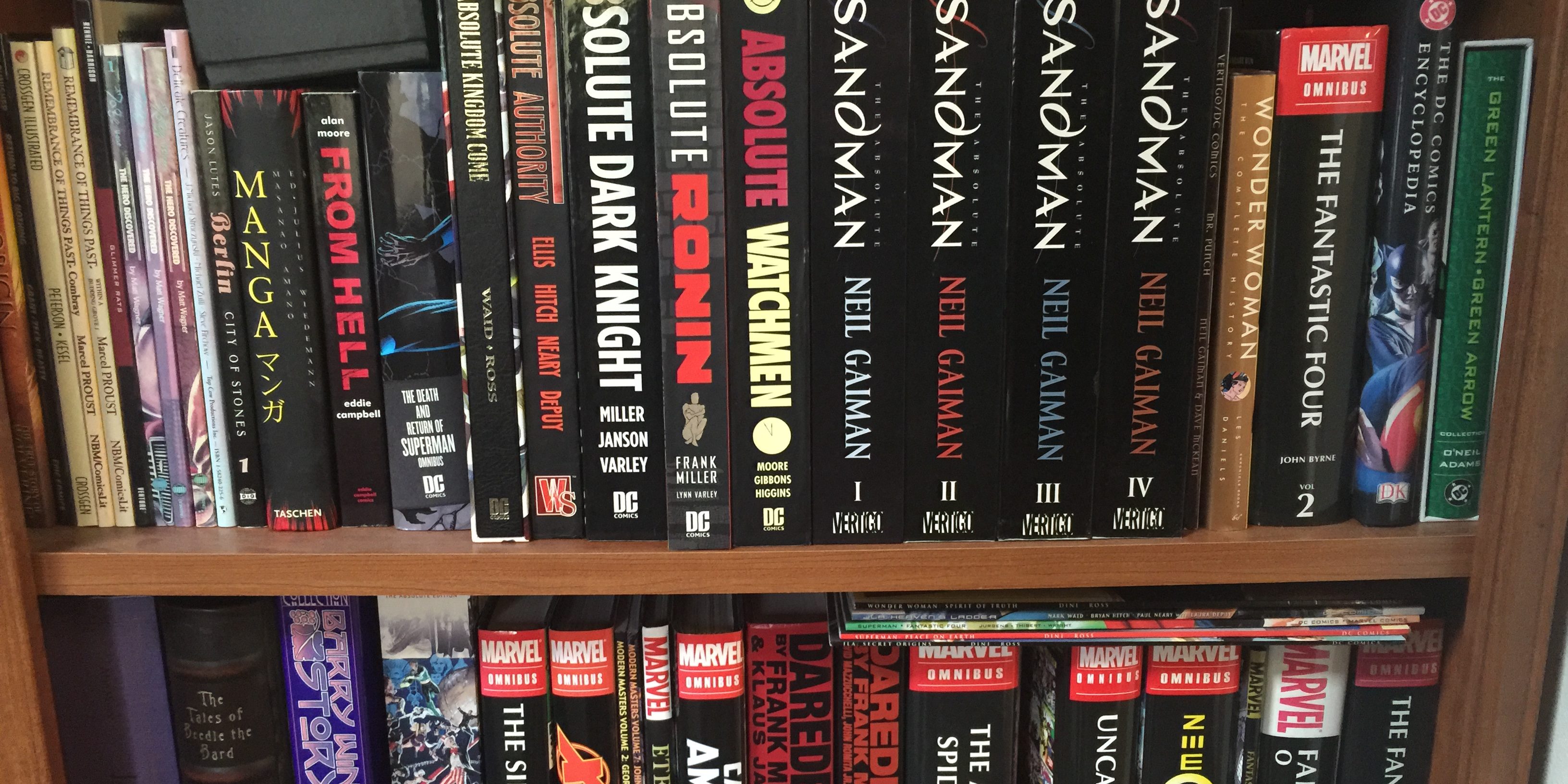 Here I am, week two of the #LifeBooksWriting challenge, and today’s topic is a bullseye. Straight into the center of my very being, who I am, what I strived for most of my life. If you’ve heard this tune before, bear with me, please. Books are the most important material possessions I ever knew as a child, library free check-out, or owned. The best books? Those are the ones I wanted to own. The ones I knew I’d read again. Books like To Kill a Mockingbird, Great Expectations, Crime and Punishment, Carrie, Ghost Story, The Lottery and Other Stories, Pork and Others, and the winning title I’ve read pretty much every year since it was published in the seventies, The Shining. It haunts me still, that cold wintery Overlook Hotel. Comic books were riding right alongside my library books as a kid, and I have the collection to prove it. The photo above are just a few of the graphic novels lining my shelves. I liked the new Captain America movie, but passed on seeing the Batman Versus Superman flick, for now.
