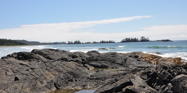 The Pointe Restaurant overlooks the ocean and the crescent beach – a great surfing spot – where eagles land and entertain diners on the rocks below, fishing . . .